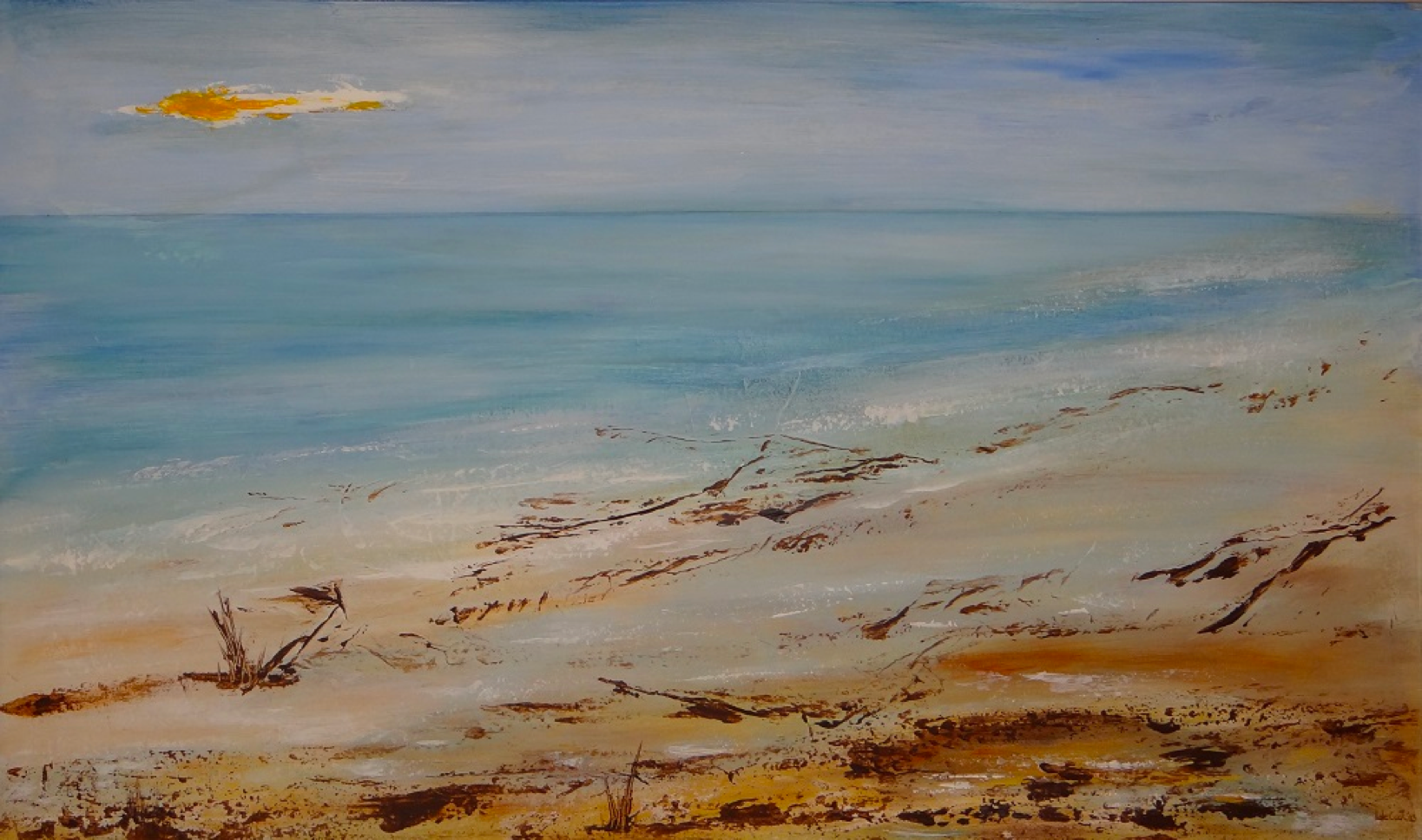 In mijn eigen Praktijk voor Haptonomische Begeleiding voel ik mij als een vis in het water: sinds 2002 heb ik de beschikking over een serene warme ruimte waar het schilderij 'Zwerfhout' een prominente plek inneemt. Het schilderij belichaamt voor mij een atmosfeer waarin ik graag de ander ontmoet: licht, tijd, rust en ruimte, en de voortdurende verandering gelegen in de dynamiek van zee en golven. Het zwerfhout dat een bedding vindt op het strand als metafoor voor het gegeven dat alles wat zich aandient er mag zijn.